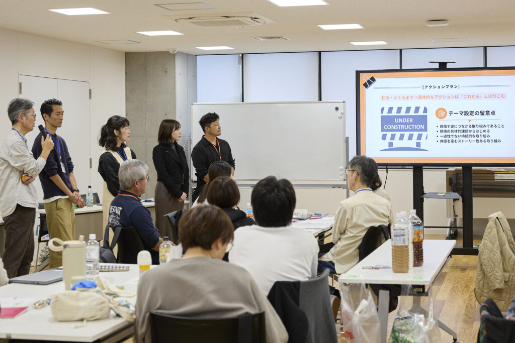 プロジェクト共有会議の目的は、成果の報告ではありません。中間地点であるこの日までの現状を共有することで、今後のアクションを明確にし、最後に参加者同士が考えを深め合う対話を目的とした会議です。